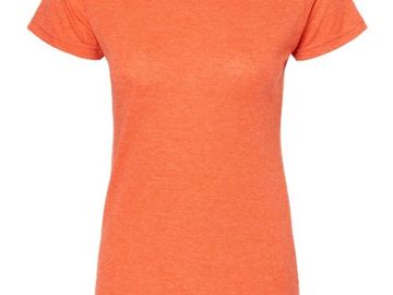 65% polyester, 35% cotton slim fit (fits tight, get a size or two larger than you would regularly order) Women's sizes - XS-2XL